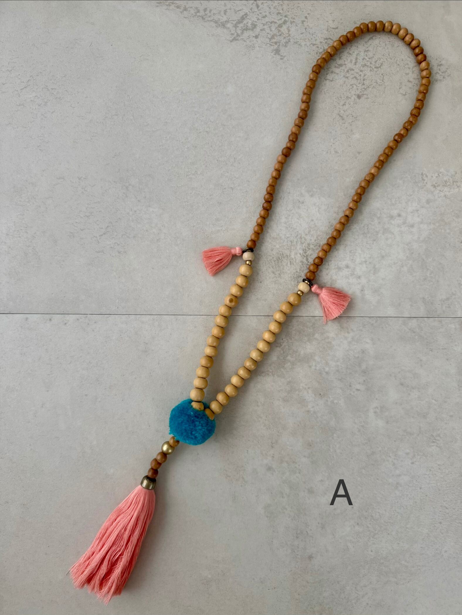 ウッドビーズ、コットンタッセル、メタルパーツ、ウール