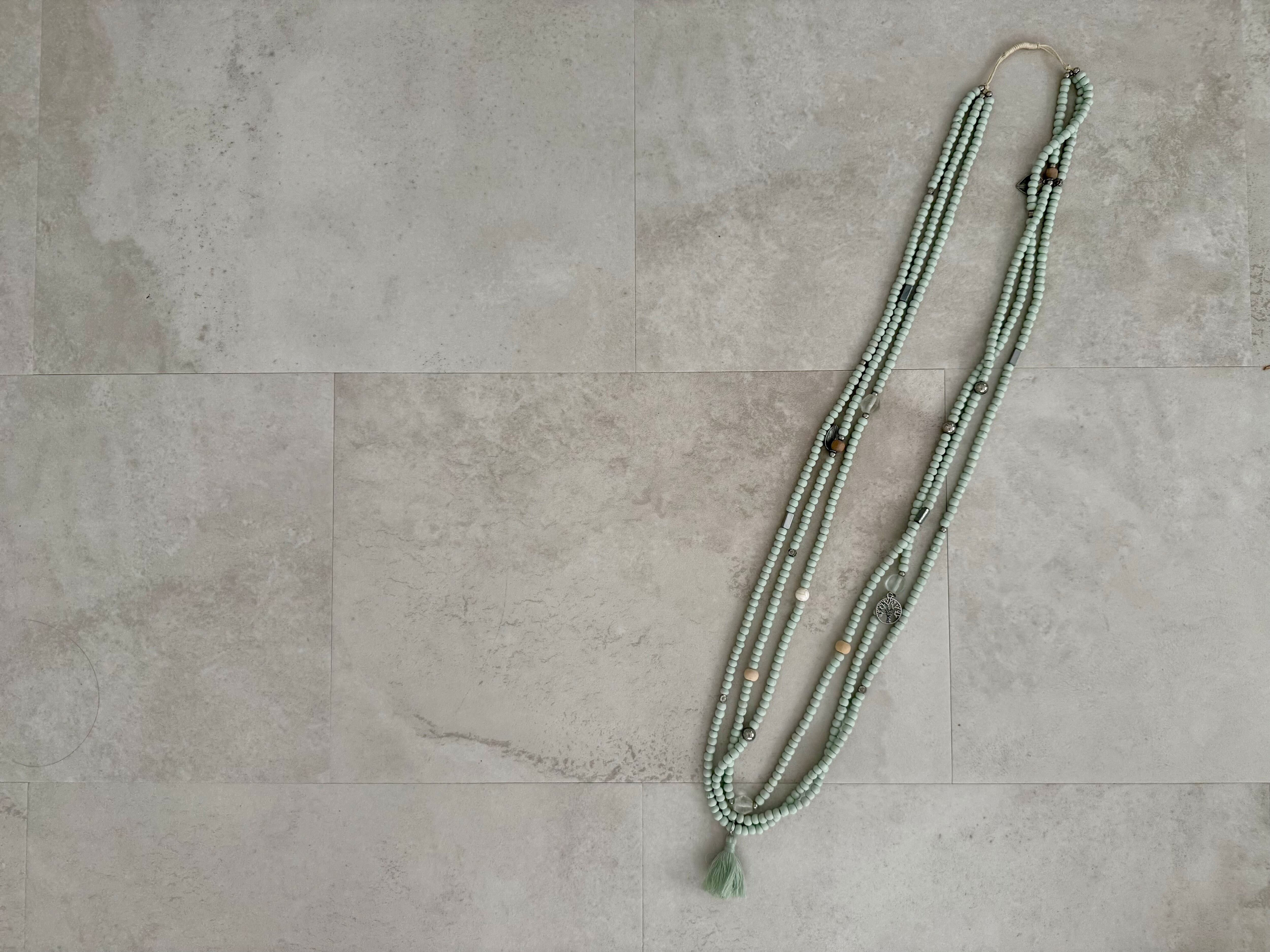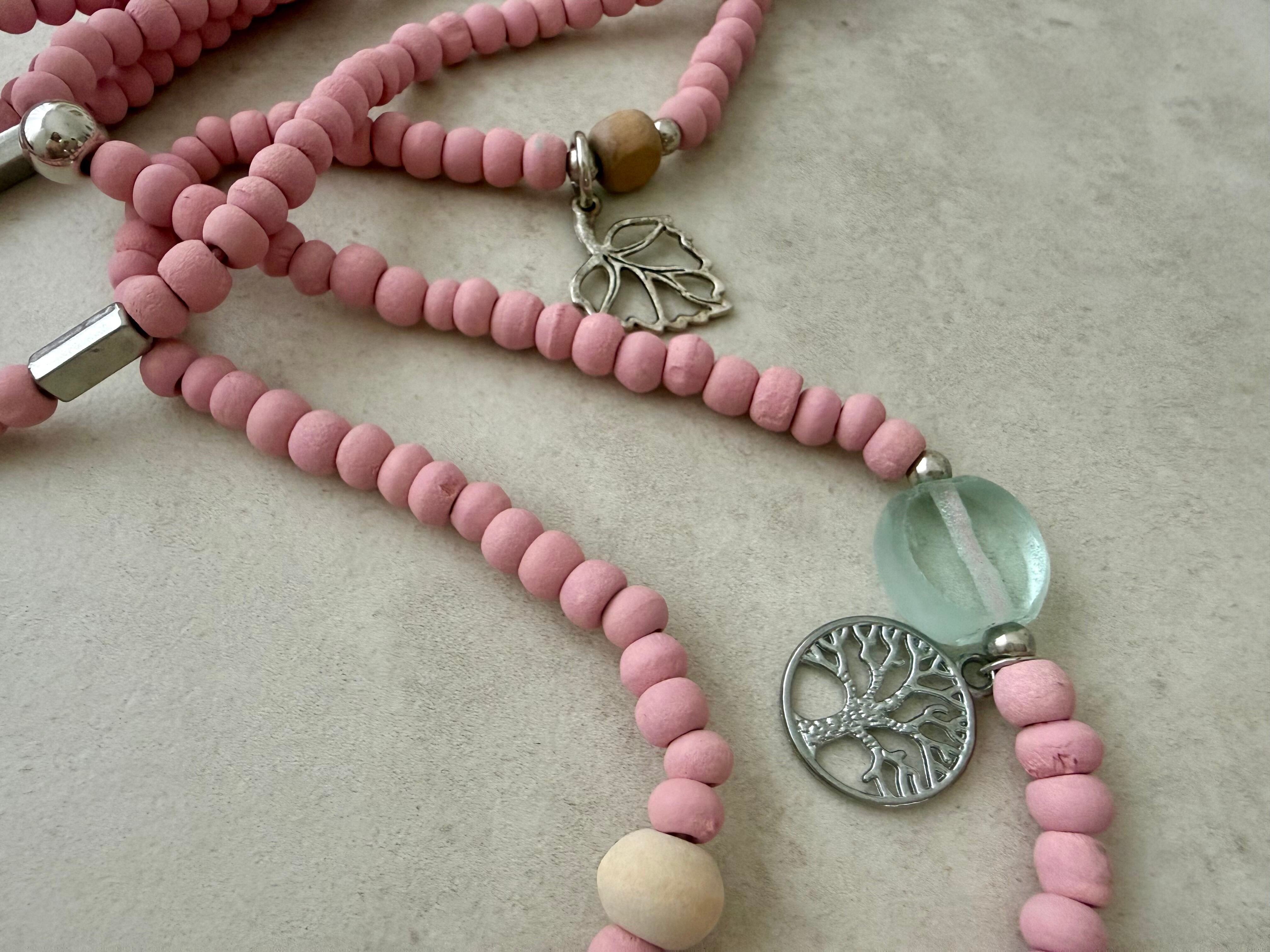 ウッドビーズ、ガラスビーズ、メタルパーツ、コットンタッセル