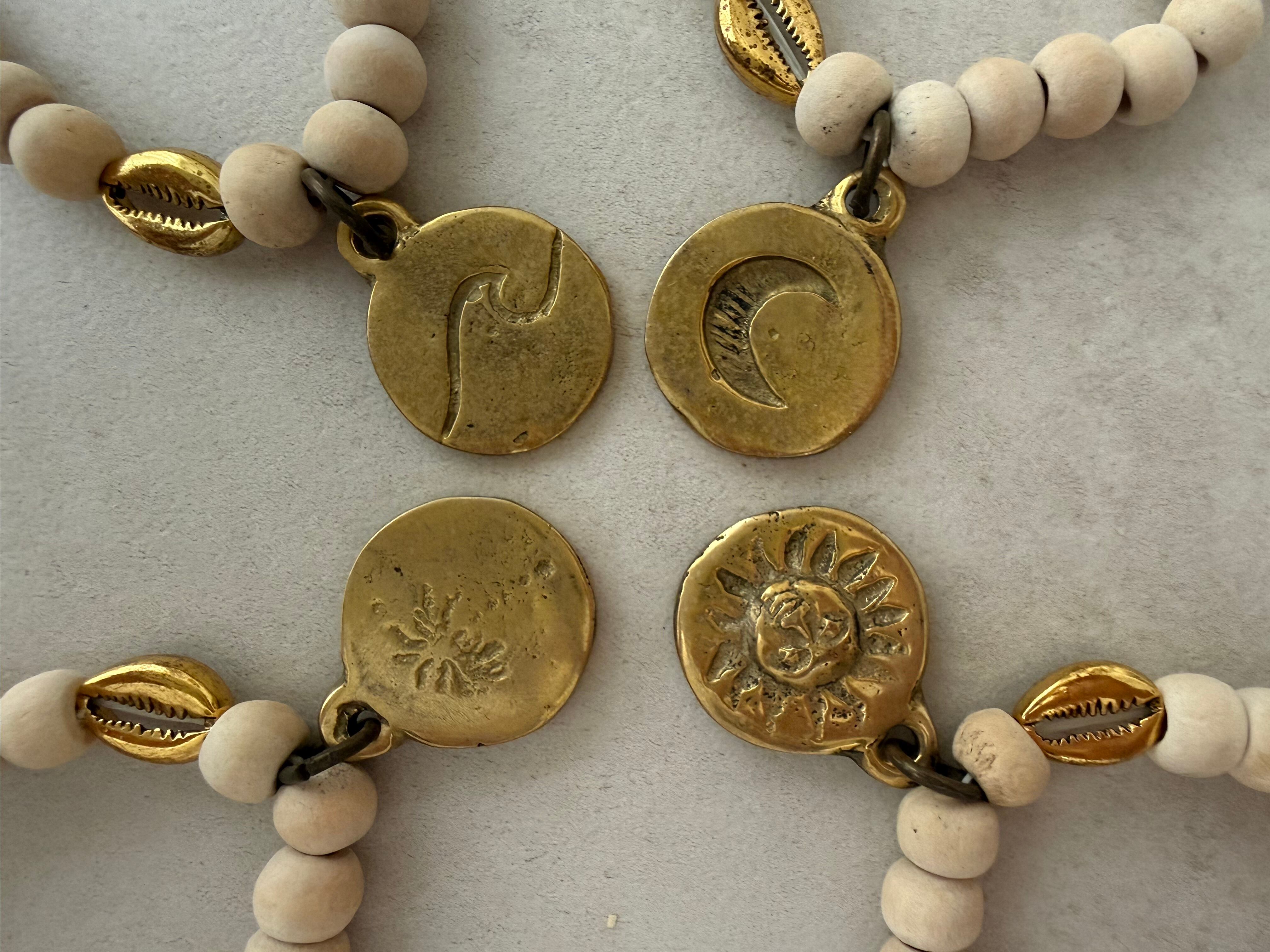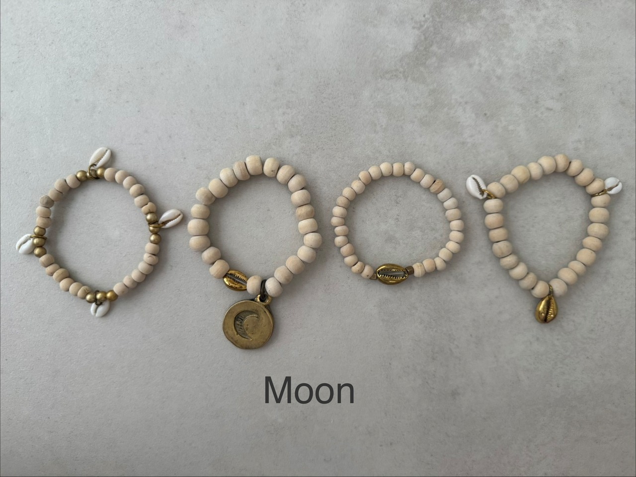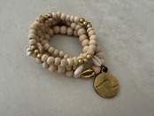 ウッドビーズ、シェル、メタルパーツ、真鍮