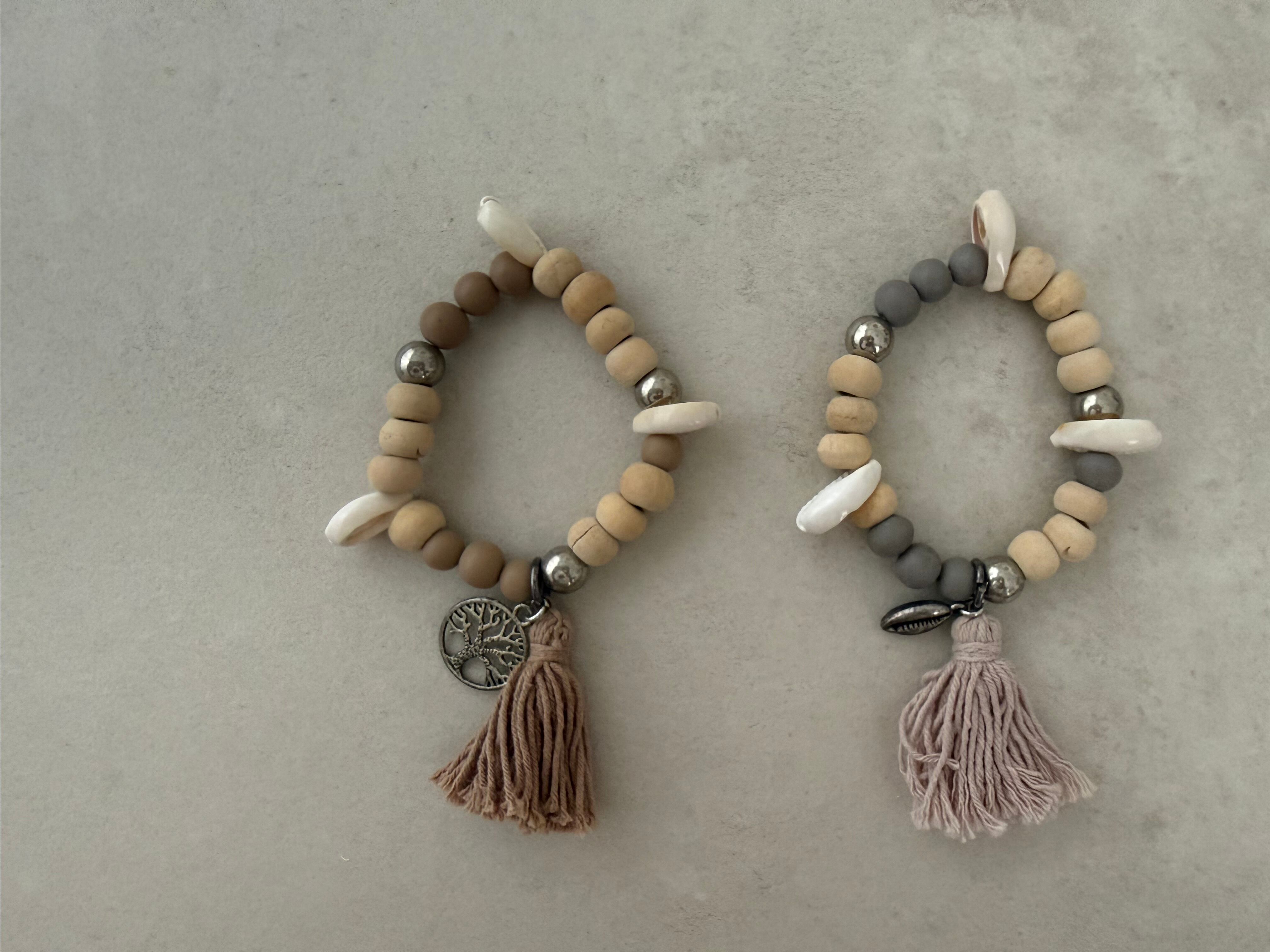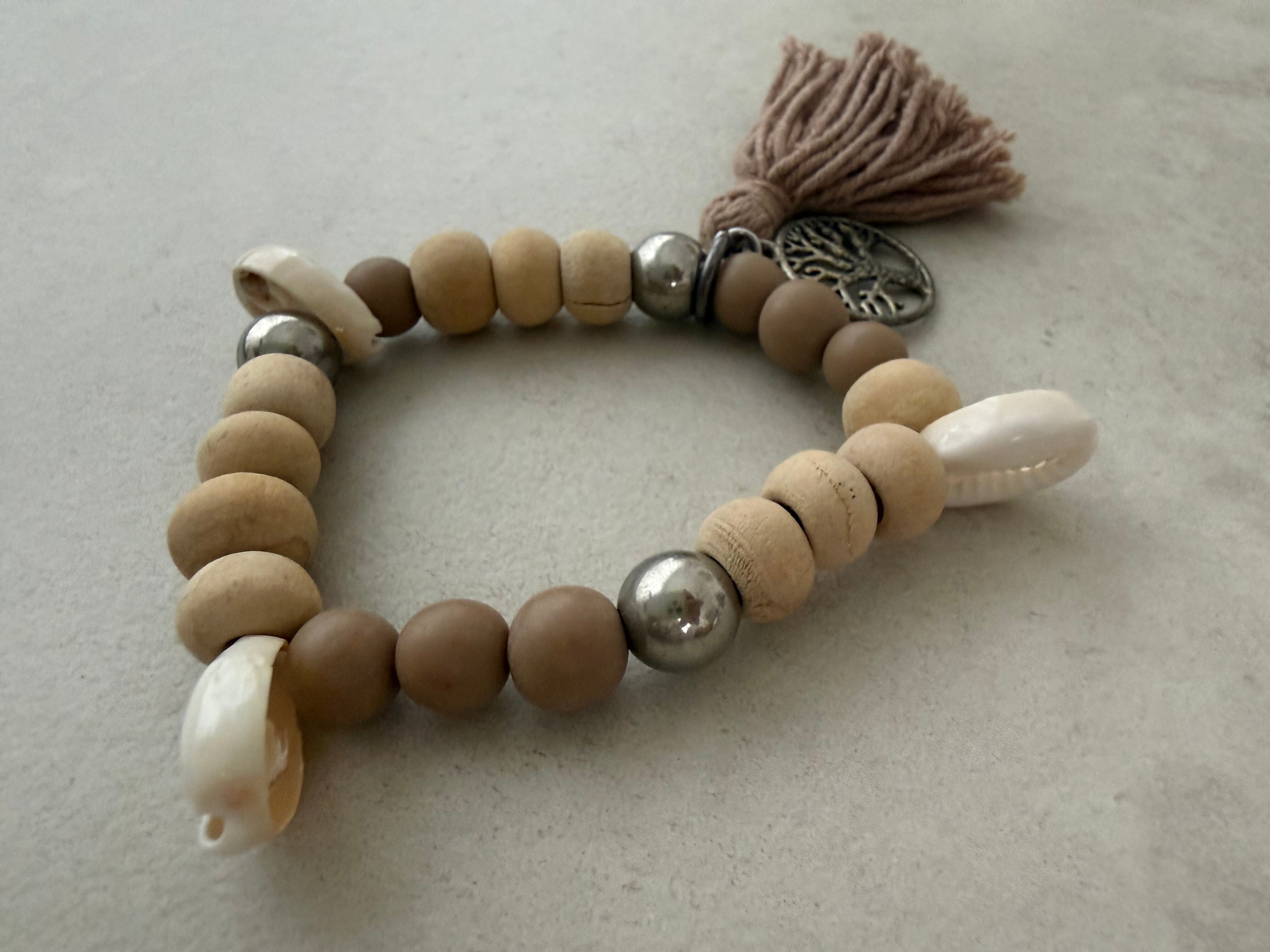 ウッドビーズ、シェル、メタルパーツ