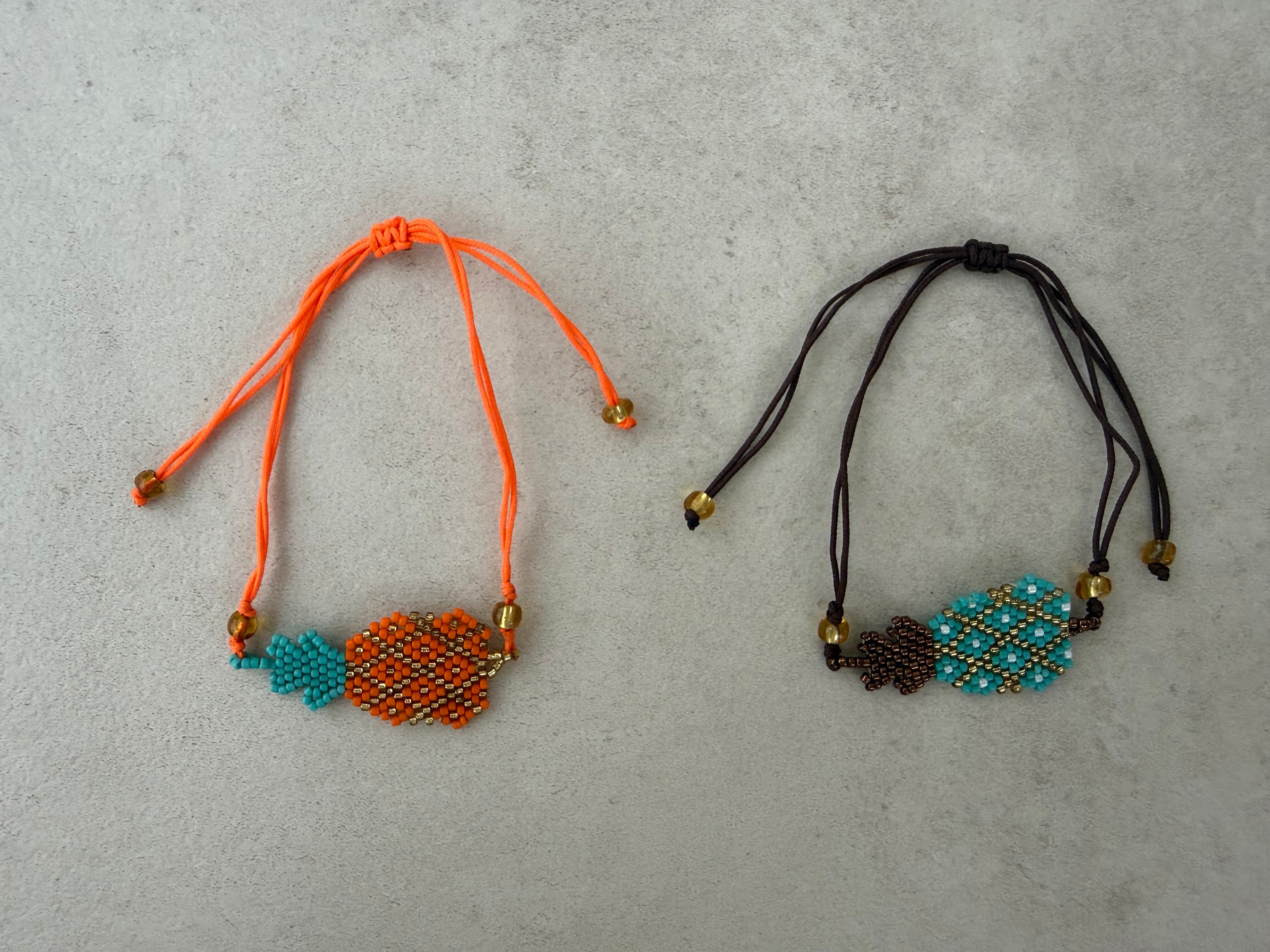 ガラスビーズ、メタルパーツ、ナイロンコード