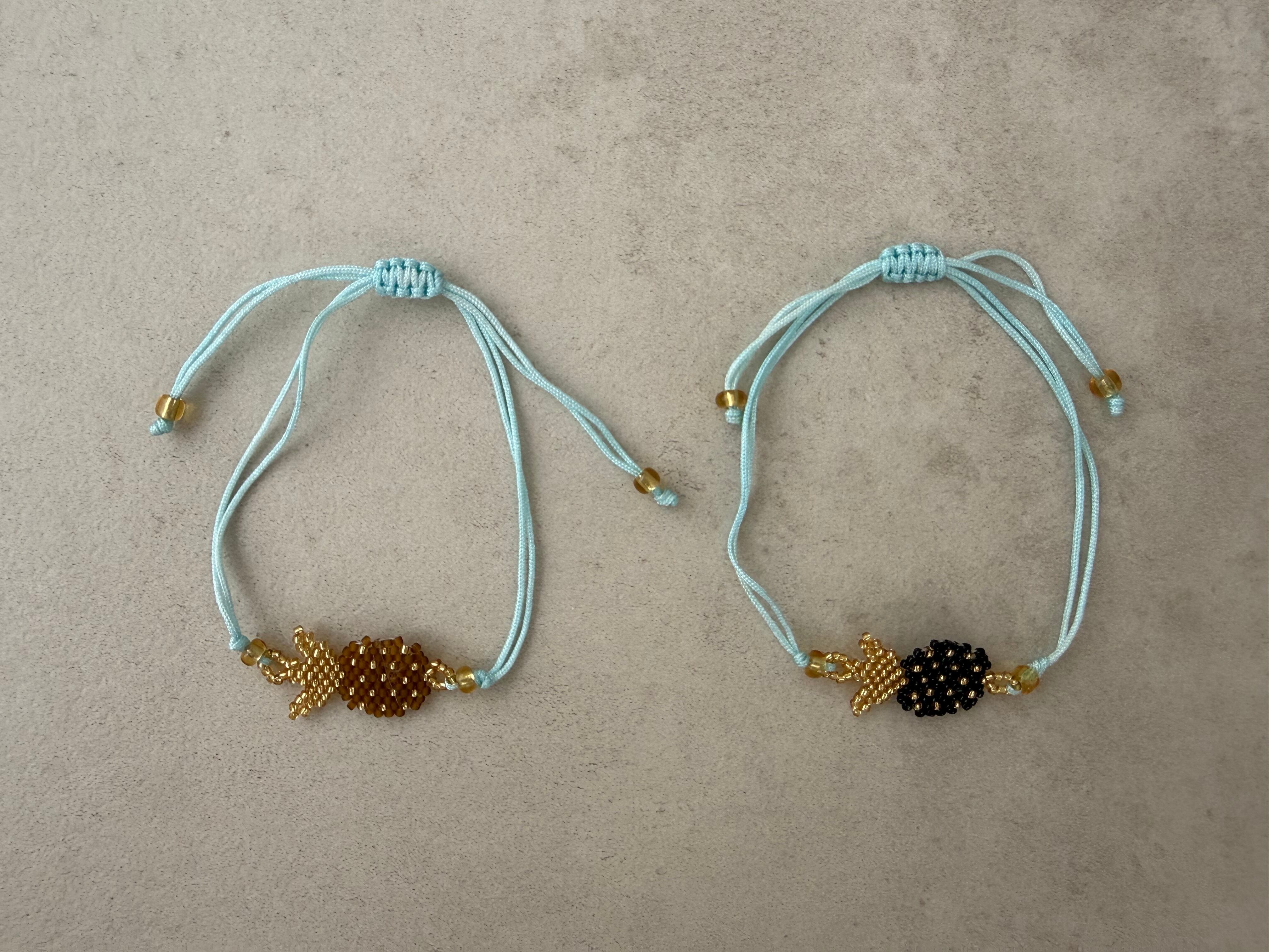 ガラスビーズ、メタルパーツ、ナイロンコード