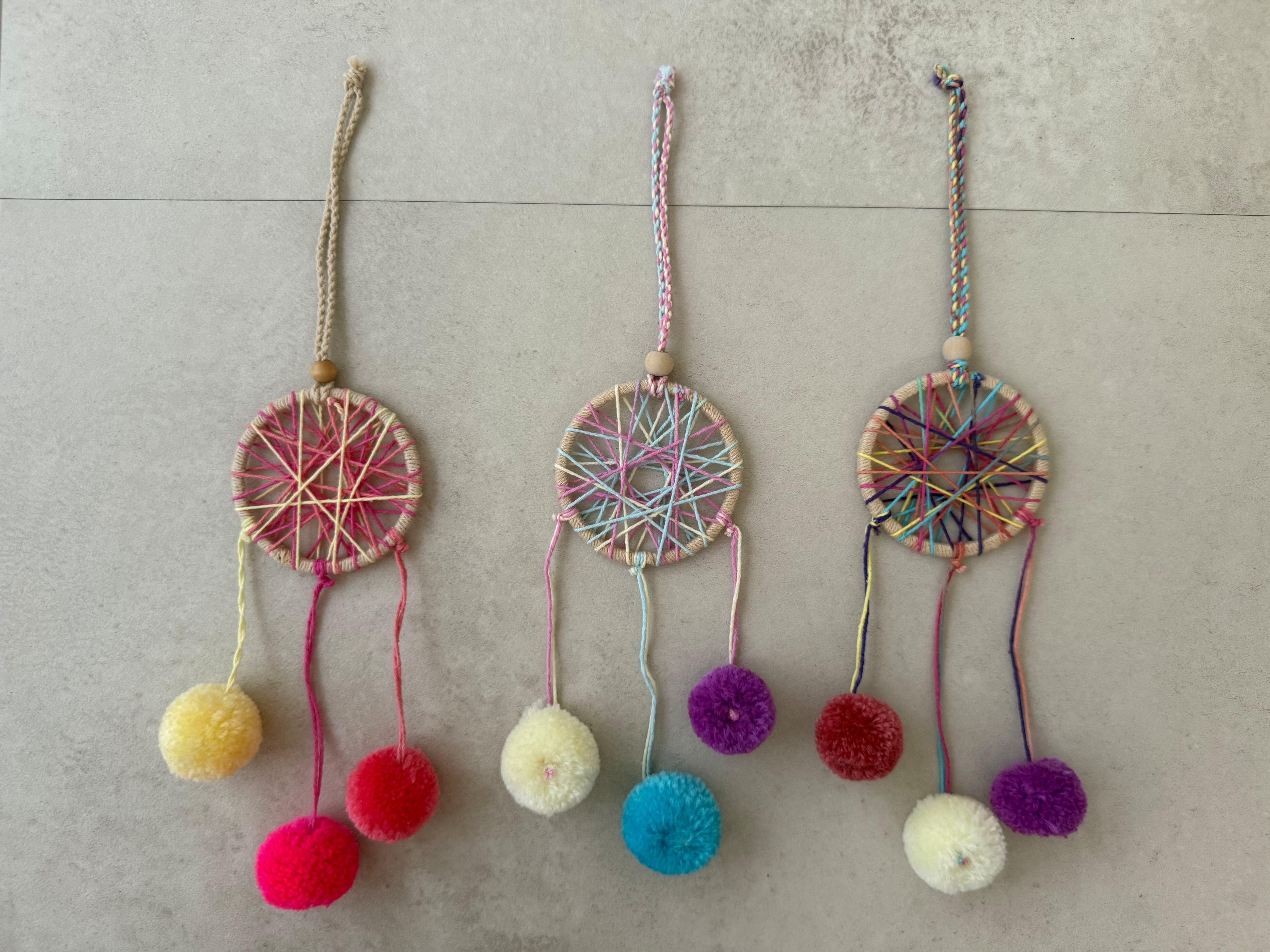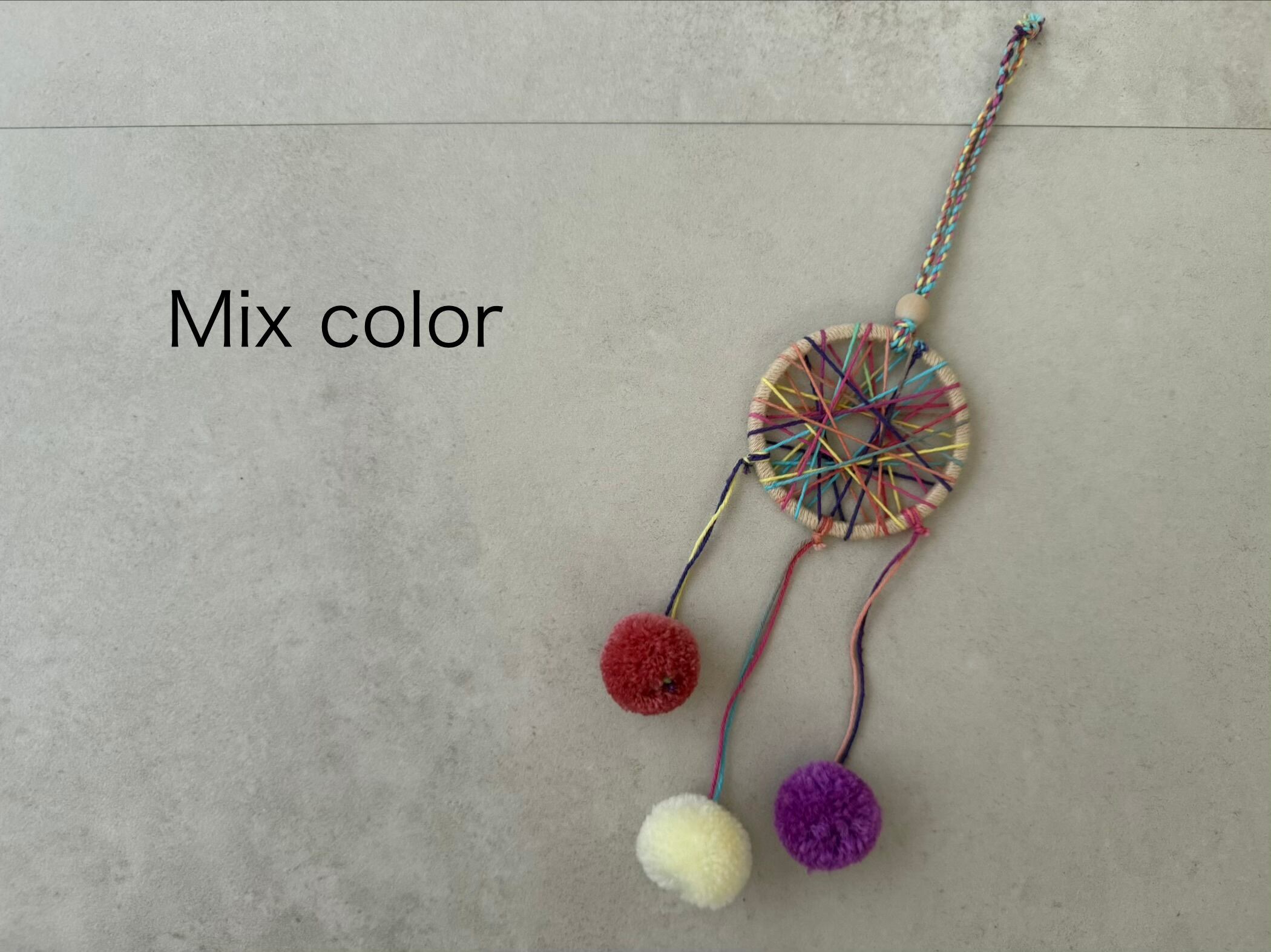 アクリルウール、ウッドビーズ、コットンコード