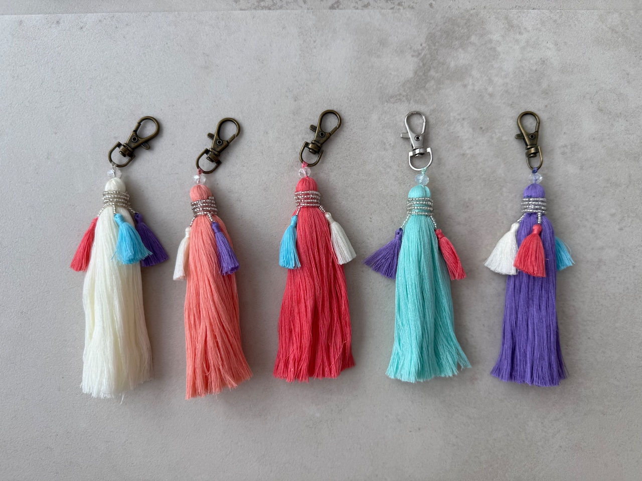 コットンタッセル、ビーズ、メタルパーツ