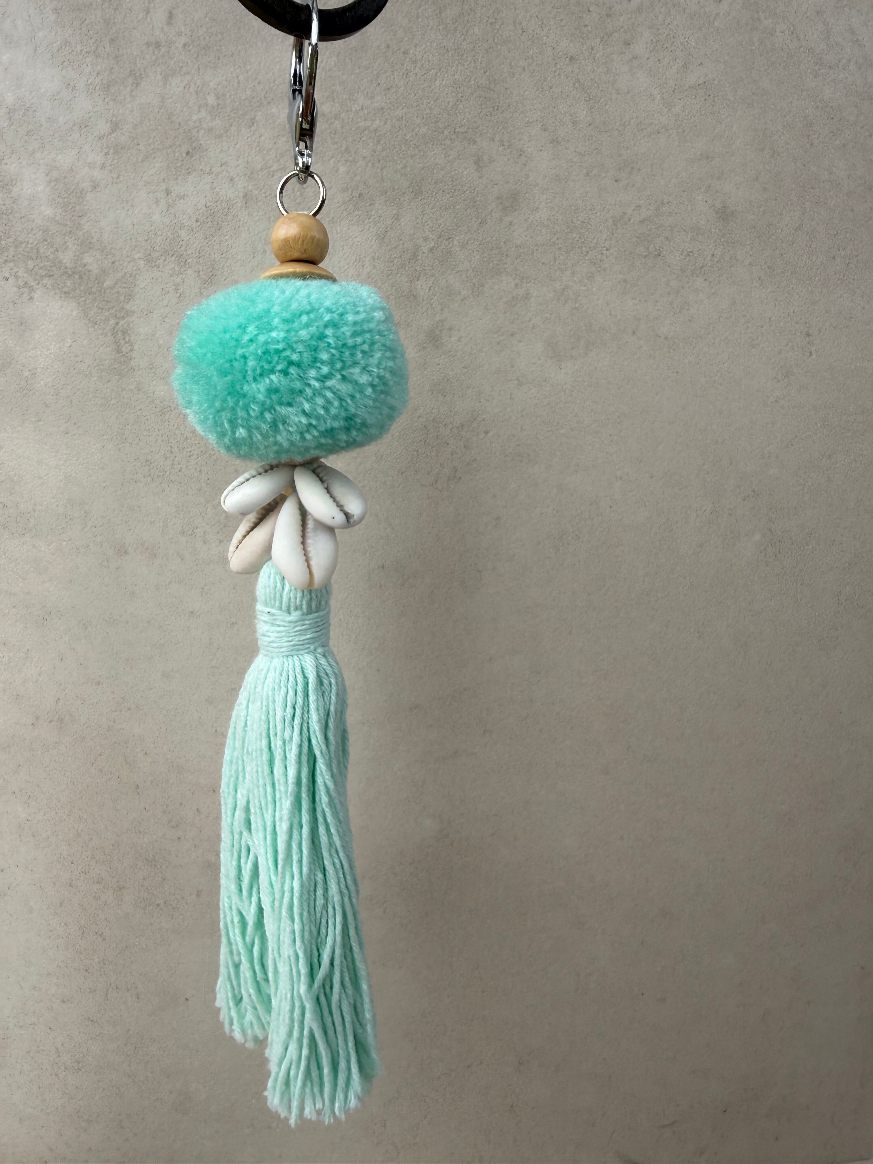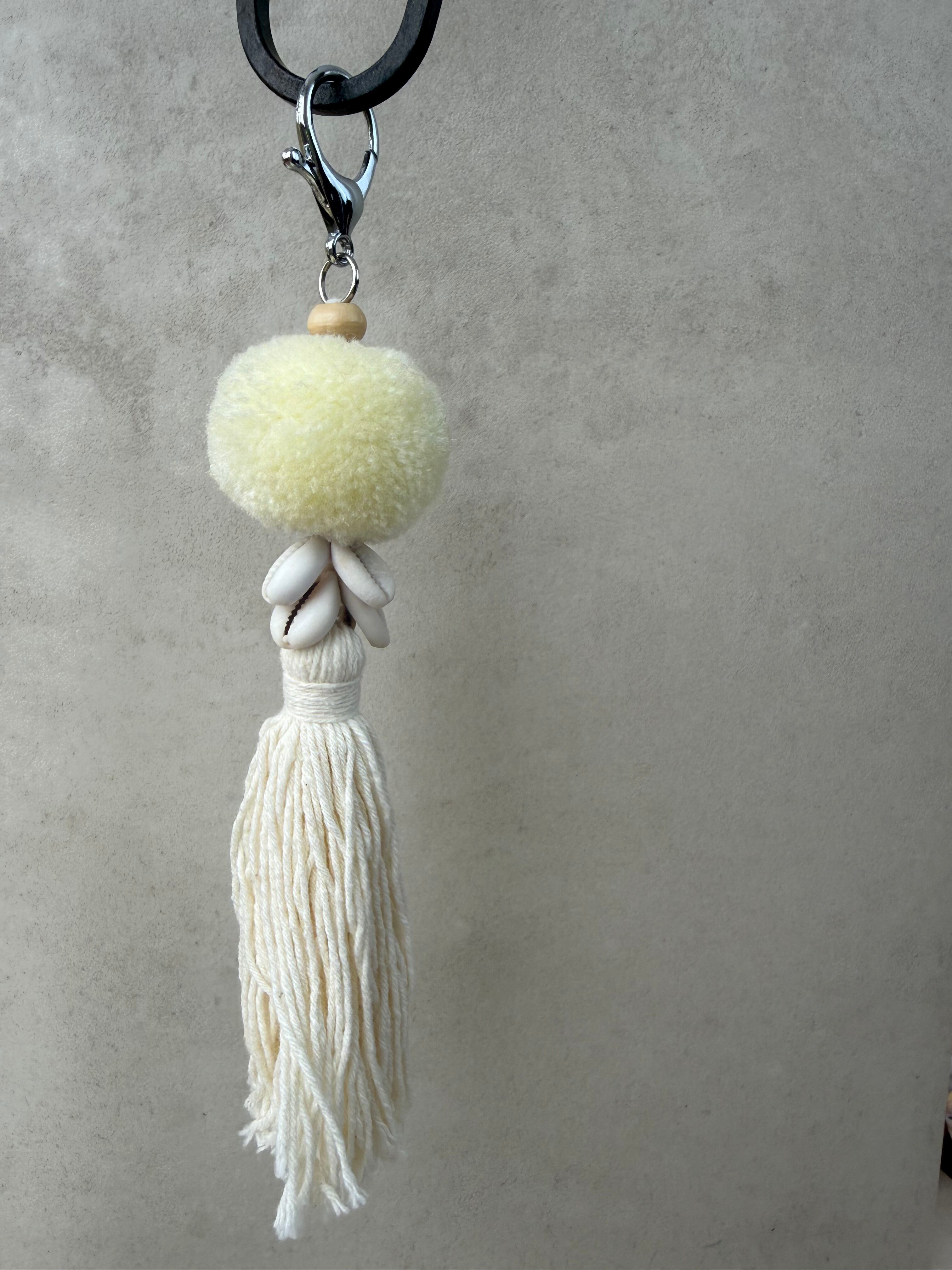 アクリルウールポンポン、コットンコード、シェル、メタルパーツ